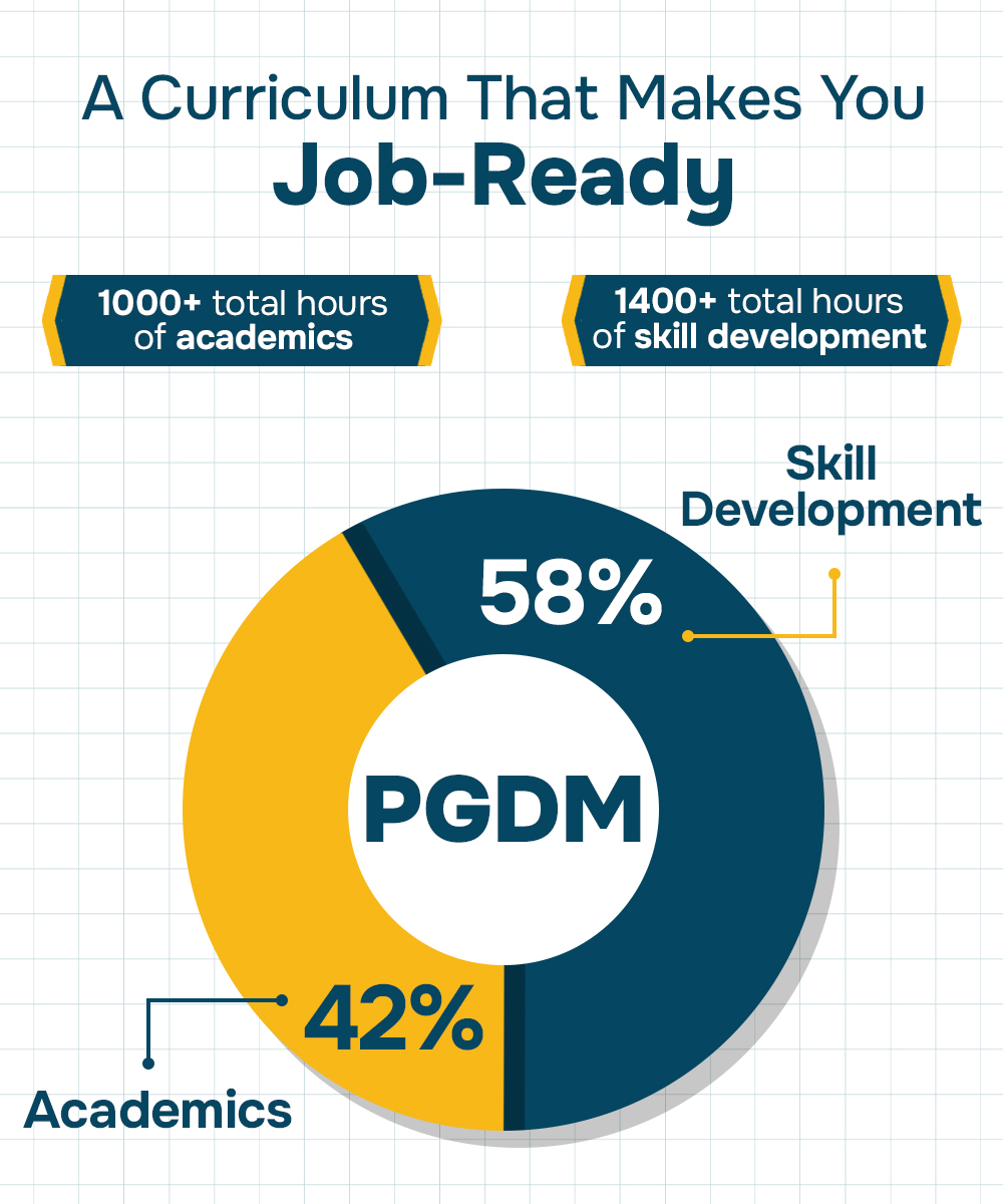 600+ hours of hands-on training is involved in 2 years of PGDM Dual Specialization.